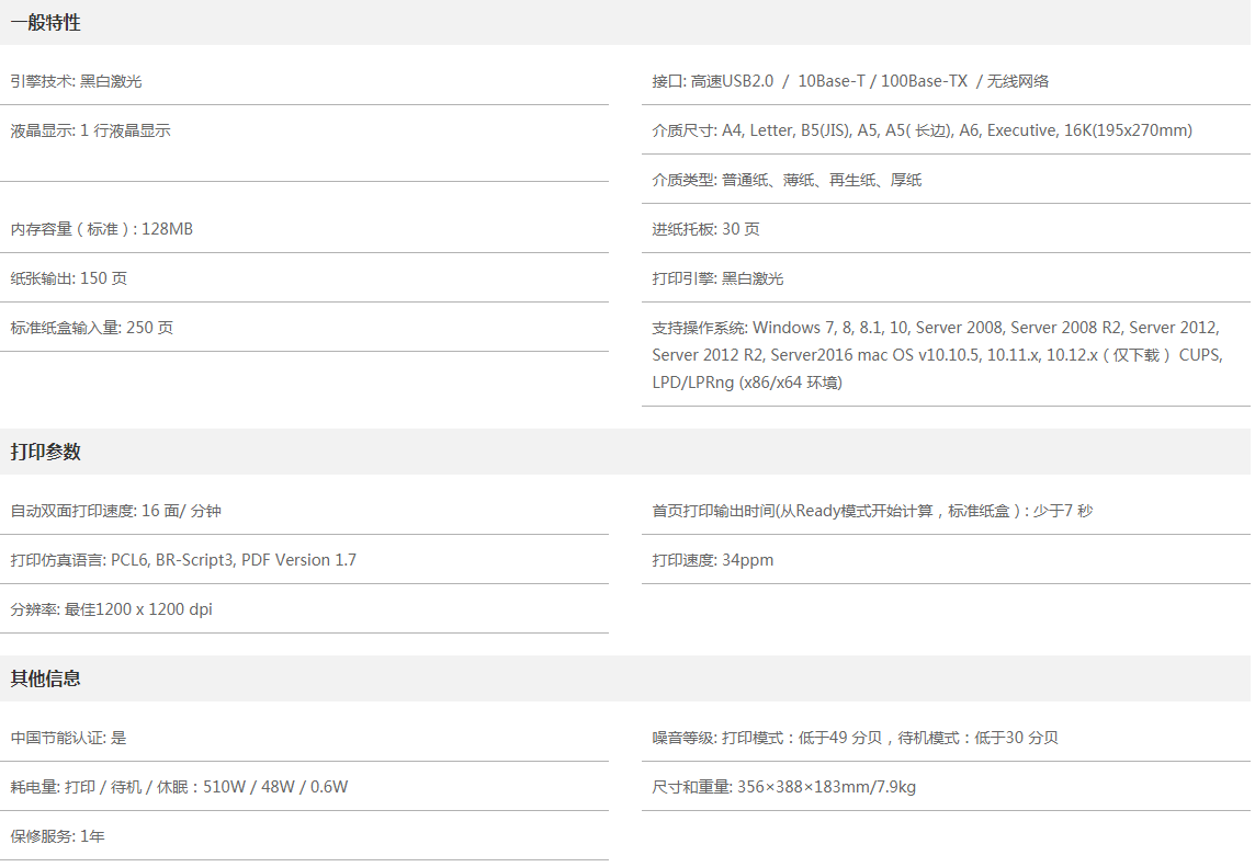 ●高達34ppm的連續(xù)打印速度,能滿足您大印量的辦公需求。