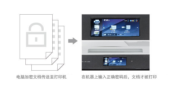 對(duì)于一些機(jī)密文檔,您可以在電腦中對(duì)該文檔進(jìn)行加密設(shè)置,然后在面板中輸入正確的密碼,文檔方可被打印出來(lái)。