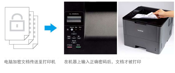 使用安全打印功能,您可以在電腦中對該文檔進(jìn)行加密設(shè)置,然后在一體機(jī)面板上輸入密碼,文檔方可被打印出來。